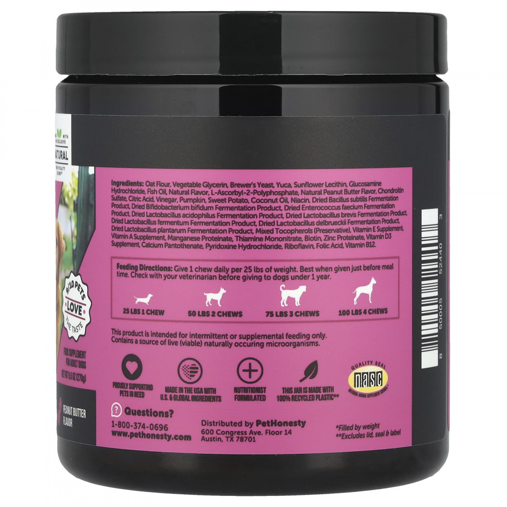 Овсяная мука, растительный глицерин, пивные дрожжи, юка, подсолнечный лецитин, глюкозамина гидрохлорид, рыбий жир, натуральный ароматизатор, l-аскорбил-2-полифосфат, натуральный ароматизатор с арахисовой пастой, хондроитинсульфат, лимонная кислота, уксус, тыква, батат, кокосовое масло, ниацин, продукт ферментации сушеной палочки (Bacillus subtilis), сухой продукт ферментации бифидобактерии бифидум (Bifidobacterium bifidum), сухой продукт ферментации Enterococcus faecium, сухой продукт ферментации лактобактерий (Lactobacillus acidophilus), сухой продукт ферментации Lactobacillus brevis, сухой продукт ферментации лактобактерий (Lactobacillus fermentum), сухой продукт ферментации Lactobacillus delbrueckii, сухой продукт ферментации Lactobacillus plantarum, смешанные токоферолы (консервант), добавка с витамином Е, добавка с витамином А, протеинат марганца, тиамина мононитрат, биотин, протеинат цинка, добавка с витамином d3, пантотенат кальция, пиридоксина гидрохлорид, рибофлавин, фолиевая кислота, витамин B12.