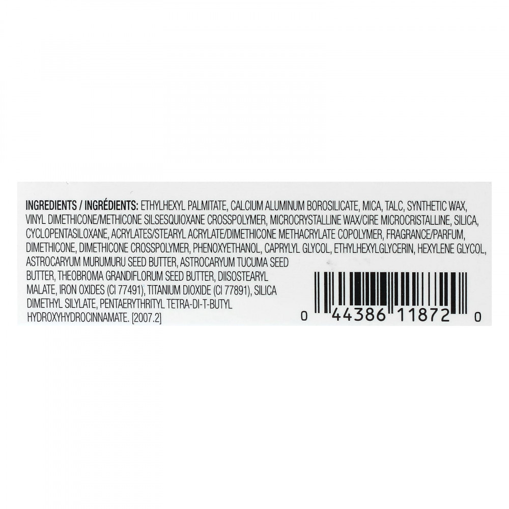 Этилгексил пальмитат, кальций алюминий боросиликат, слюда, тальк, синтетический воск, винил диметикон/метикон силсесквиоксан кроссполимер, микрокристаллический воск, диоксид кремния, циклопентасилоксан, акрилаты/стеарил акрилат/диметикон метакрилат сополимер, отдушка, диметикон, диметикон кроссполимер, феноксиэтанол, каприлилгликоль, этилгексилглицерин, гексиленгликоль, масло семян мурумуру (Astrocaryum murumuru), масло семян астрокариума (Astrocaryum tucuma), масло семян купуасу (Theobroma grandiflorum), диизостеарил малат, оксиды железа (CI 77491), диоксид титана (CI 77891), диметил силилат диоксида кремния, пентаэритритил тетра-ди-трет-бутил гидроксигидроциннамат