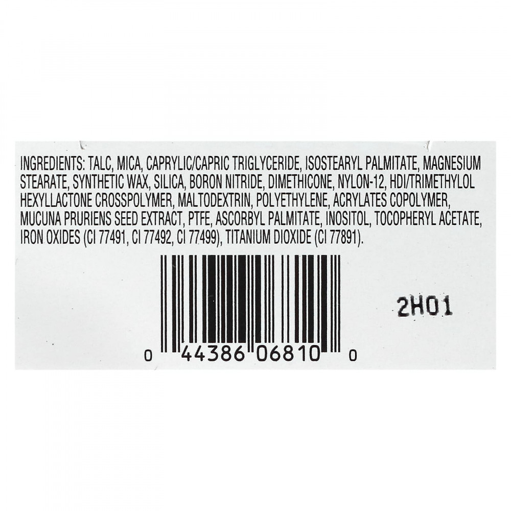 Тальк, слюда, каприловый/каприновый триглицерид, изостеарил пальмитат, стеарат магния, синтетический воск, диоксид кремния, нитрид бора, диметикон, нейлон-12, HDI/триметилол гексалактон кроссполимер, мальтодекстрин, полиэтилен, сополимер акрилатов, экстракт семян мукуны жгучей (Mucuna pruriens), ПТФЭ, аскорбил пальмитат, инозитол, токоферилацетат, оксиды железа (CI 77491, CI 77492, CI 77499), диоксид титана (CI 77891).