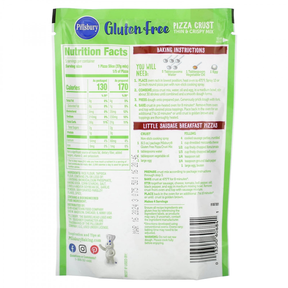 Основной продукт во время еды. Наслаждайтесь любимыми комбинациями топпингов для пиццы с помощью тонкой и хрустящей смеси для пиццы Pillsbury ™ без глютена.
