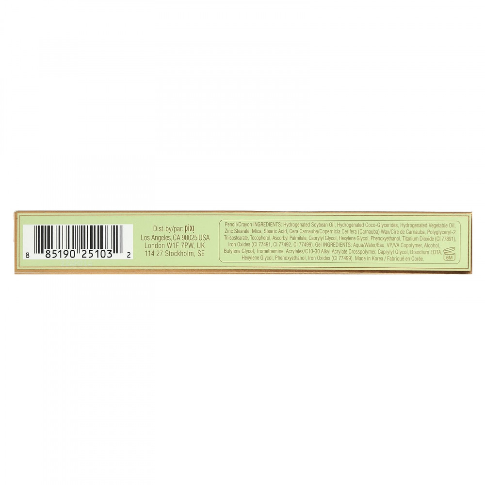 Карандаш. Гидрогенизированное соевое масло, гидрогенизированные кокоглицериды, гидрогенизированное растительное масло, стеарат цинка, слюда, стеариновая кислота, карнаубский воск (Сopernicia cerifera), полиглицерил-2 триизостеарат, токоферол, аскорбил пальмитат, каприлилгликоль, гексиленгликоль, феноксиэтанол, диоксид титана (CI 77891), оксиды железа (CI 77491, CI 77492, CI 77499).