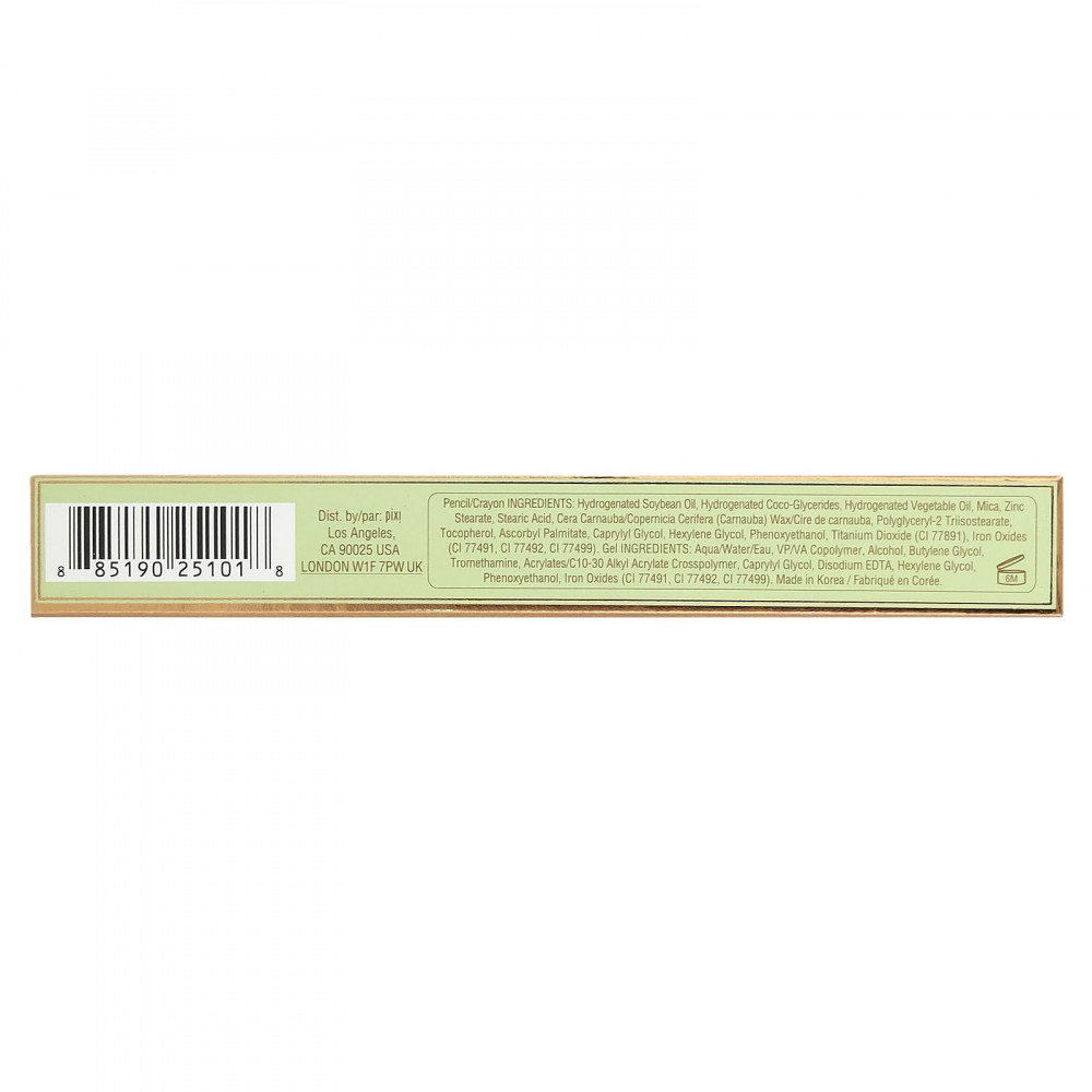 Карандаш. Гидрогенизированное соевое масло, гидрогенизированные кокоглицериды, гидрогенизированное растительное масло, стеарат цинка, стеариновая кислота, карнаубский воск (Copernicia cerifera), полиглицерил-2 триизостеарат, токоферол, каприлилгликоль, феноксиэтанол, аскорбил пальмитат., гексиленгликоль, слюда (CI 77019), диоксид титана (CI 77891), оксиды железа (CI 77499, CI 77492, CI 77491).