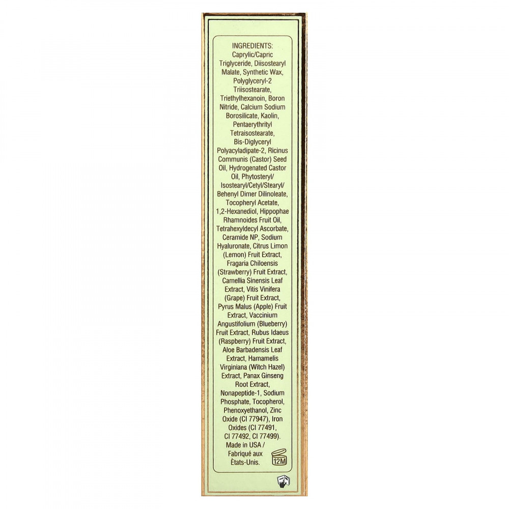Каприловый/каприновый триглицерид, диизостеарил малат, синтетический воск, полиглицерил-2 триизостеарат, триэтилгексаноин, нитрид бора, кальций натрий боросиликат, каолин, пентаэритритил тетраизостеарат, бис-диглицерил полиациладипат-2, касторовое масло (Ricinus communis), гидрогенизированное касторовое масло, фитостерил/изостеарил/цетил/стеарил/бегенил димер дилинолеат, токоферилацетат, 1,2-гександиол, масло из плодов облепихи крушиновидной (Hippophae rhamnoides), тетрагексилдецил аскорбат, керамид NP, гиалуронат натрия, экстракт плодов лимона (Citrus limon), экстракт ягод клубники (Fragaria chiloensis), экстракт листьев зелёного чая (Camellia sinensis), экстракт плодов винограда (Vitis vinifera), экстракт яблока (Pyrus malus), экстракт ягод голубики (Vaccinium angustifolium), экстракт ягод малины (Rubus idaeus), экстракт листьев алоэ вера (Aloe barbadensis), экстракт гамамелиса (Hamamelis virginiana), экстракт корня женьшеня (Panax ginseng), нонапептид-1, фосфат натрия, токоферол, феноксиэтанол, оксид цинка (CI 77947), оксиды железа (CI 77491, CI 77492, CI 77499).