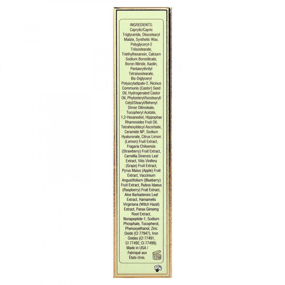 Каприловый/каприновый триглицерид, диизостеарил малат, синтетический воск, полиглицерил-2 триизостеарат, триэтилгексаноин, нитрид бора, кальций натрий боросиликат, каолин, пентаэритритил тетраизостеарат, бис-диглицерил полиациладипат-2, касторовое масло (Ricinus communis), гидрогенизированное касторовое масло, фитостерил/изостеарил/цетил/стеарил/бегенил димер дилинолеат, токоферилацетат, 1,2-гександиол, масло из плодов облепихи крушиновидной (Hippophae rhamnoides), тетрагексилдецил аскорбат, керамид NP, гиалуронат натрия, экстракт плодов лимона (Citrus limon), экстракт ягод клубники (Fragaria chiloensis), экстракт листьев зелёного чая (Camellia sinensis), экстракт плодов винограда (Vitis vinifera), экстракт яблока (Pyrus malus), экстракт ягод голубики (Vaccinium angustifolium), экстракт ягод малины (Rubus idaeus), экстракт листьев алоэ вера (Aloe barbadensis), экстракт гамамелиса (Hamamelis virginiana), экстракт корня женьшеня (Panax ginseng), нонапептид-1, фосфат натрия, токоферол, феноксиэтанол, оксид цинка (CI 77947), оксиды железа (CI 77491, CI 77492, CI 77499).