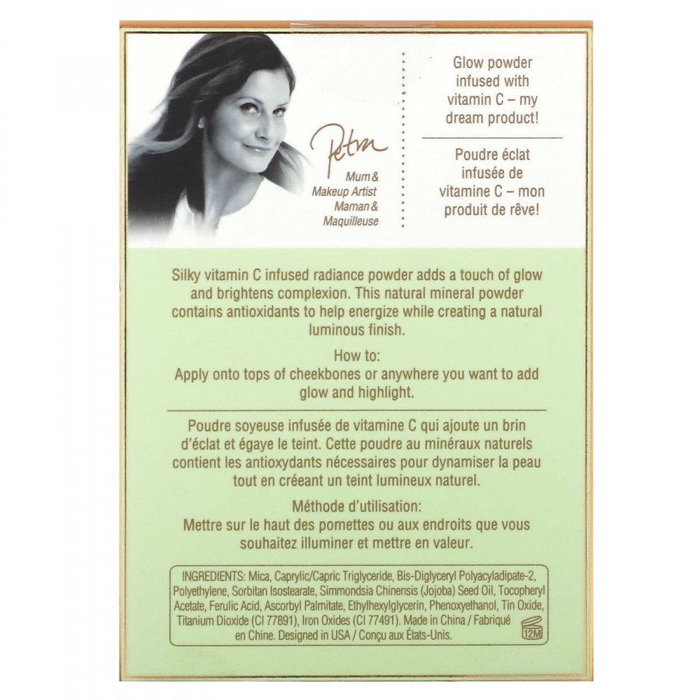 Шелковистая пудра с витамином С придает коже сияние и улучшает цвет лица. Эта натуральная минеральная пудра содержит антиоксиданты, которые заряжают энергией и создают естественное сияние.