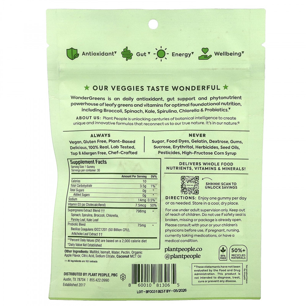 WonderGreens - это ежедневный антиоксидант, поддерживающий кишечник и источник фитонутриентов из листовой зелени и витаминов для оптимального основного питания. включая брокколи, шпинат, капусту, спирулину, хлореллу и пробиотики.