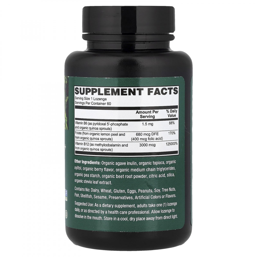 Органический фолат, полученный из кожуры органического лимона и органических ростков киноа, поддерживает здоровый уровень крови и клеточный уровень. Метилкобаламин, коферментная форма витамина B12, необходима для здоровья нервной системы, особенно для веганов и вегетарианцев из-за ограниченных растительных источников.