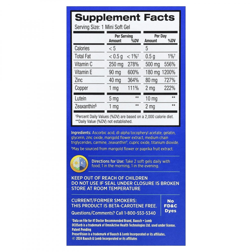 Формула PreserVision AREDS 2 содержит улучшенную форму лютеина и зеаксантина, которая легче усваивается организмом‡ и помогает увеличить количество питательных веществ, которые могут циркулировать в глазах.