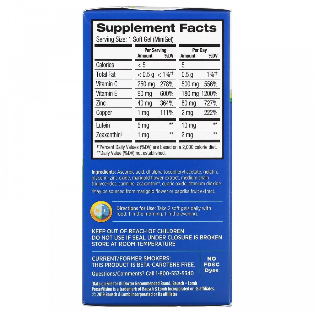 PreserVision® AREDS2 Formula обеспечивает в день:
