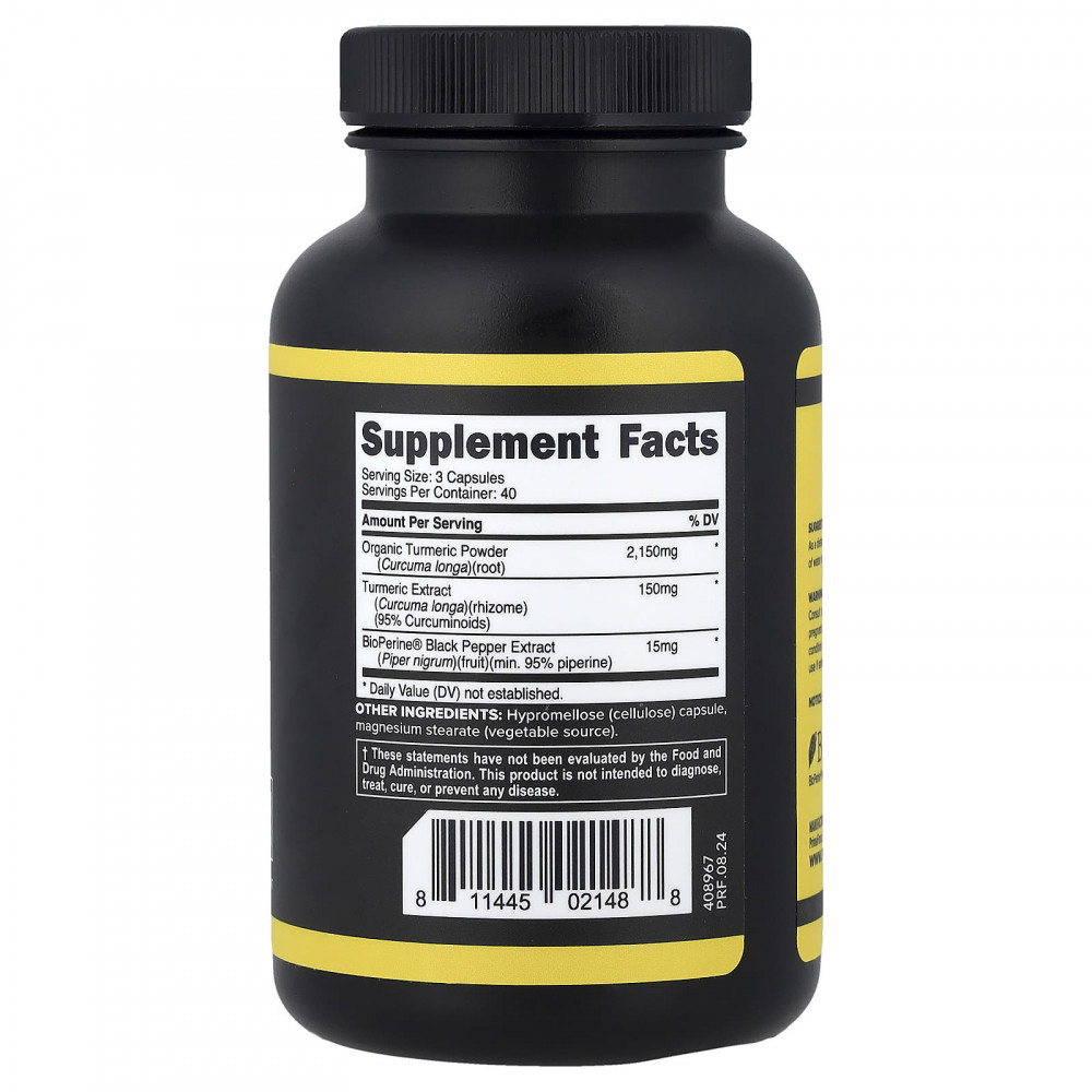 С BioPerine для лучшего усвоения и содержит 95% куркуминоидов и куркумы.