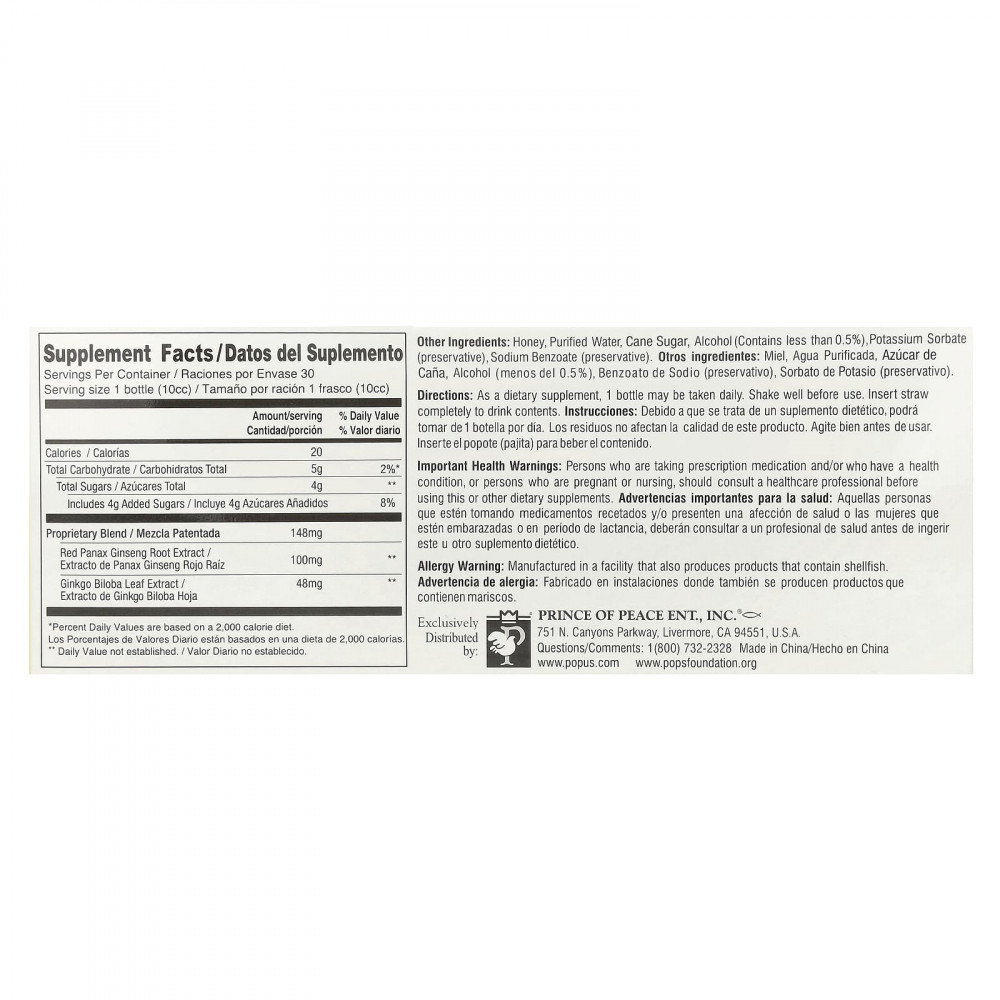Женьшень традиционно используется в качестве источника энергии и поддержки иммунной системы. Гинкго билоба, известное как одна из самых ценных трав, использовалось в качестве незаменимой добавки в Китае, Японии и Корее на протяжении тысячелетий. Prince of Peaceent., Inc. предлагает вам этот высокоочищенный экстракт листьев гинкго билоба в специальной формуле со всемирно известным экстрактом корня женьшеня красного обыкновенного (Panax) с горы Чанбайшань в Китае. Этот продукт бренда Prince of Peace, произведенный с использованием передовых методов обработки, является высококачественной питательной добавкой для оптимального здоровья.