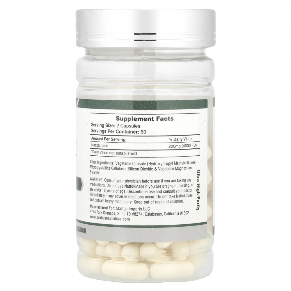 Проконсультируйтесь с врачом перед использованием, если вы принимаете какие-либо лекарства. Не используйте наттокиназу, если вы беременны, кормите грудью или моложе 18 лет. При возникновении любых побочных реакций следует прекратить прием и немедленно обратиться к врачу. Не принимайте наттокиназу и не работайте с тяжелой техникой. Хранить в недоступном для детей месте.