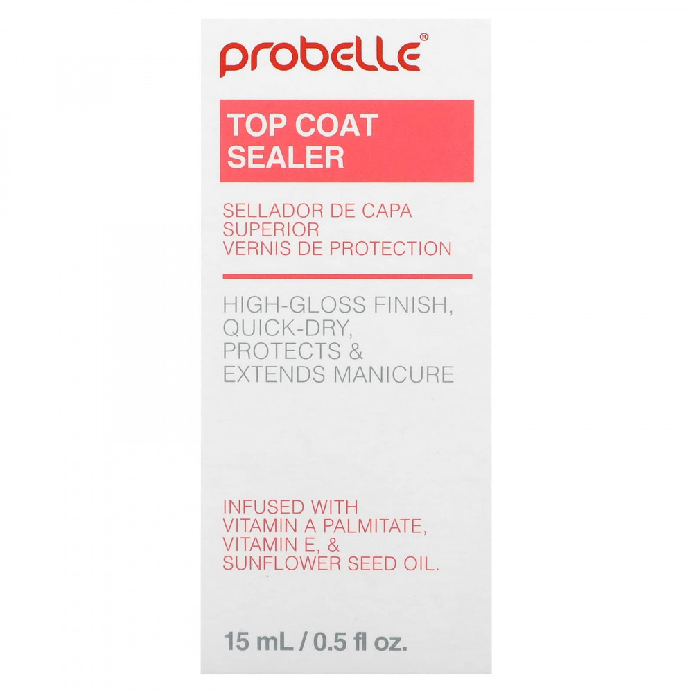 Top Coat Sealer от Probelle - это стойкое верхнее покрытие для маникюра, обеспечивающее ультра-блеск. Это веганское верхнее покрытие с чрезвычайно быстрым высыханием применяется в качестве завершающего этапа маникюра, чтобы сохранить цвет и продлить стойкость.