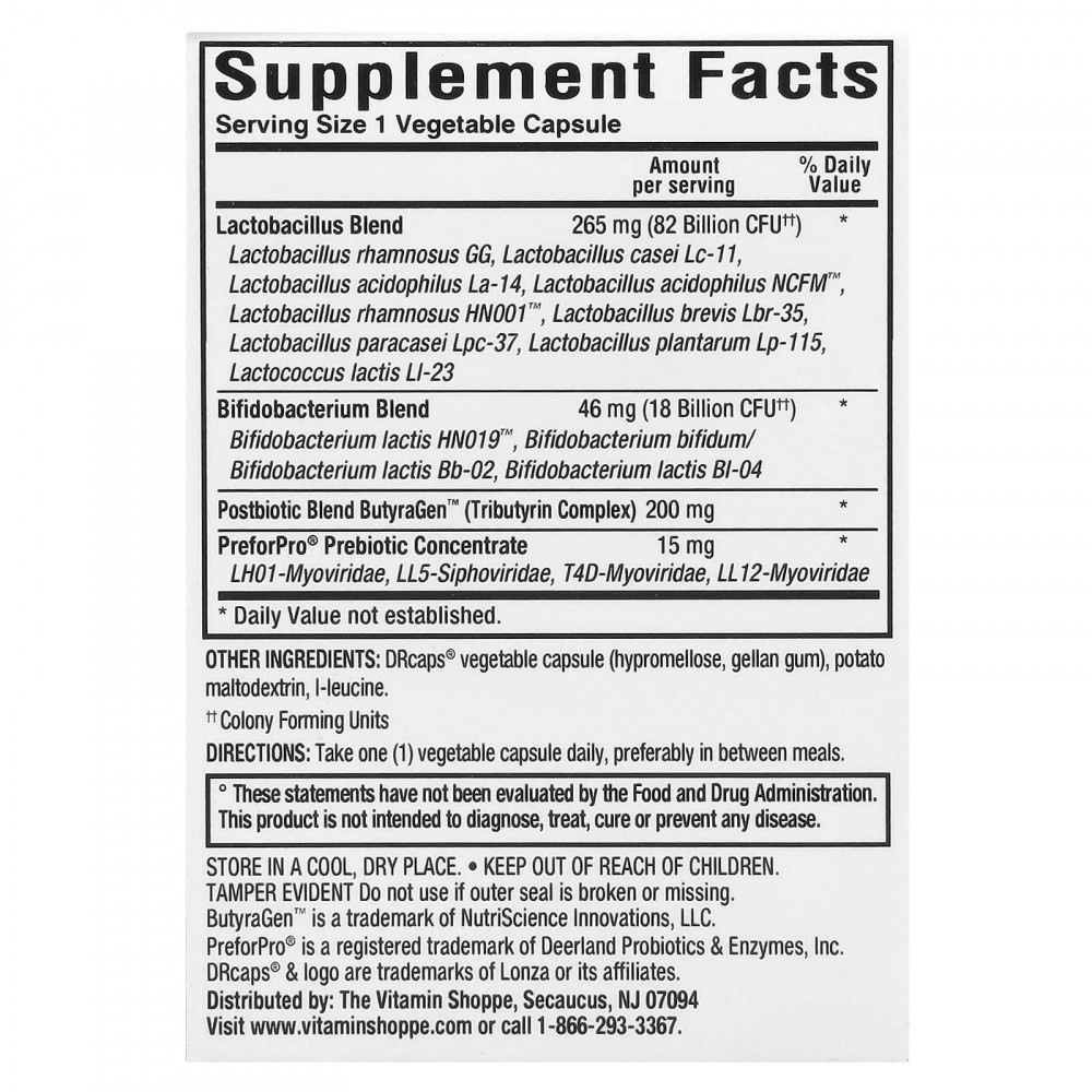 | Смесь лактобактерий Lactobacillus rhamnosus GG, Lactobacillus casei Lc-11, Lactobacillus acidophilus La-14, Lactobacillus acidophilus NCFM ™, Lactobacillus rhamnosus HN001 ™, Lactobacillus brevis Lbr-35, Lactobacillus brevis Lbr-35, лактобактерии Lpactobacillus paracasei-23, лактобактерии лактобактерии Lpactobacillus-23, лактобактерии лактобактерии Lpactobacillus-23, Lactobacillus paracaseis-23 | 265 мг (82 млрд КОЕ ††) | * |
