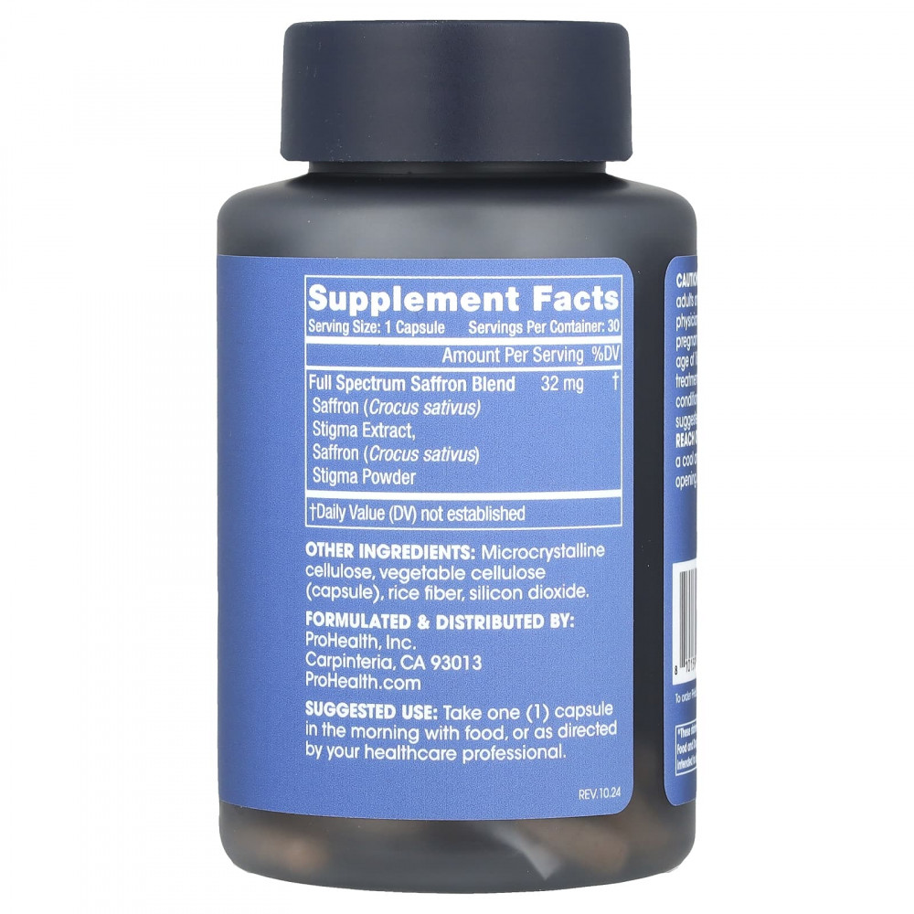 Смесь полного спектра: Эта формула сочетает в себе биоактивные компоненты из цельного растения, стандартизированные кроцины и сафраналь - основные соединения, обеспечивающие полезные свойства шафрана для организма.