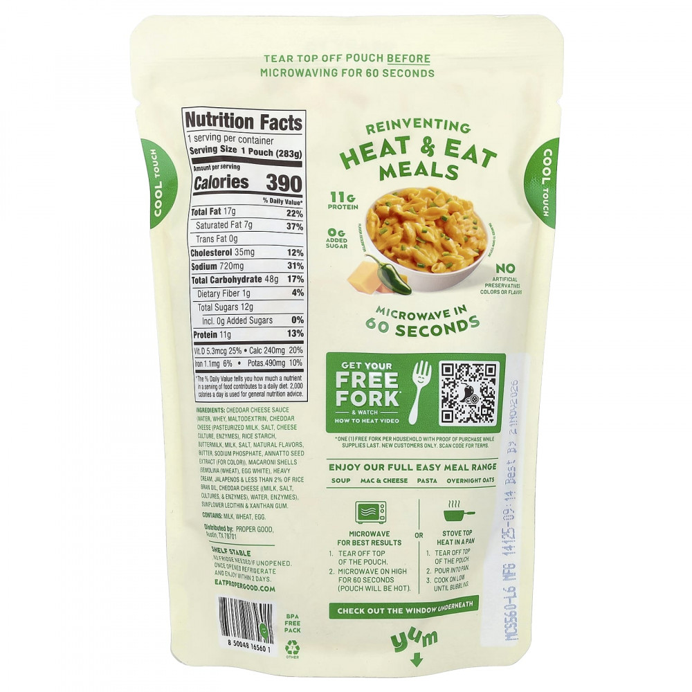 Наши пряные макароны с сыром чеддер готовы к употреблению... просто разогрейте и съешьте, чтобы получить пряные, сочные, сырные оболочки для пасты! Идеальный уровень остроты халапеньо, который придает этому легкому блюду пикантность и многообразие вкуса!