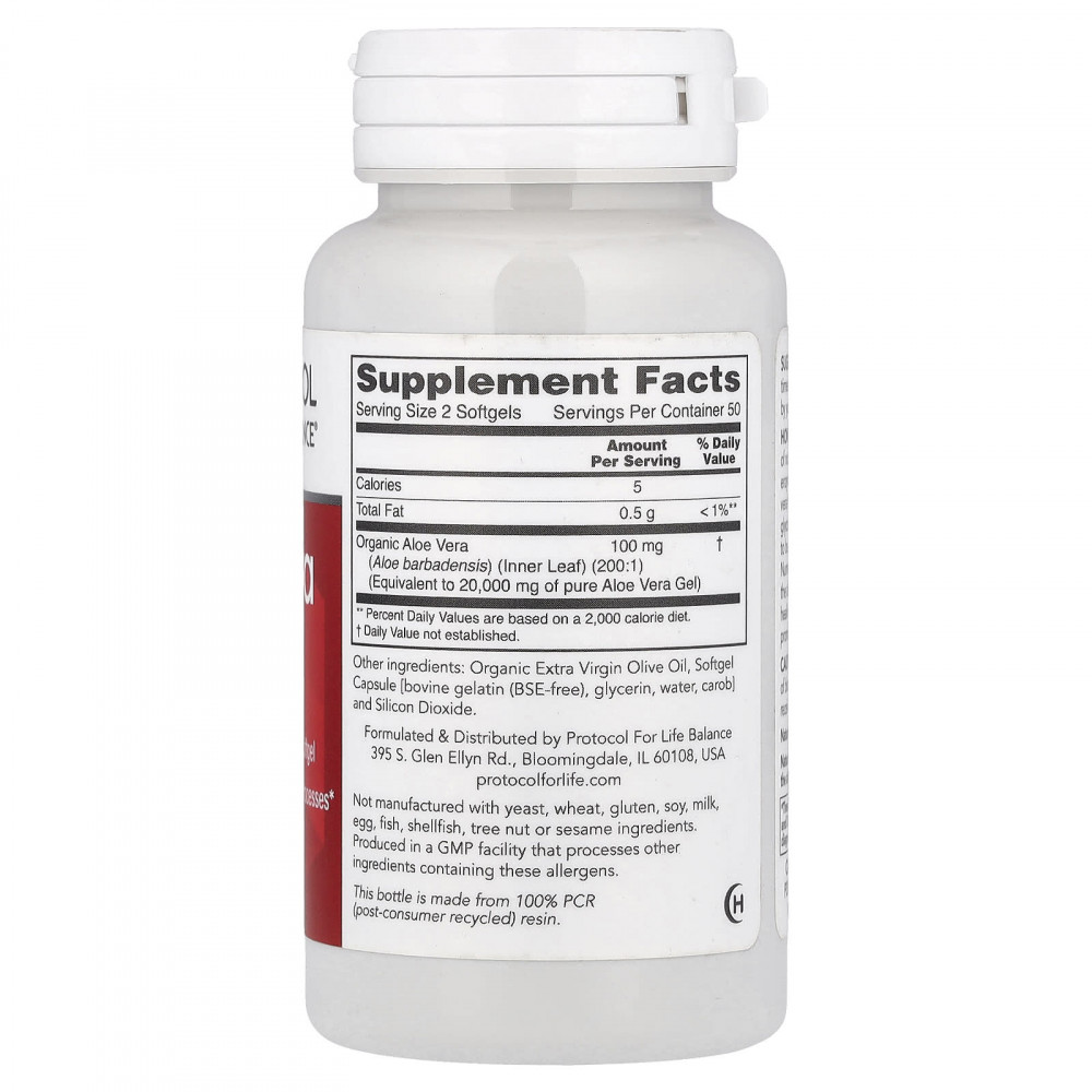 | Органическое алоэ вера (Aloe barbadensis) (мякоть листьев) (200:1) (Эквивалент 20 000 мг чистого геля алоэ вера.) | 100 мг | † |