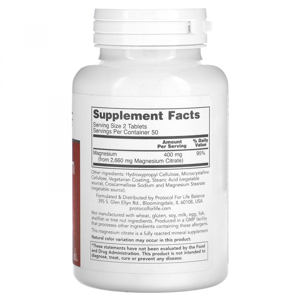 При изготовлении продукта не используются пшеница, глютена, соя, молоко, яиц, рыба, моллюски и древесные орехи. Производится на предприятии, имеющем регистрацию надлежащей производственной практики (GMP), где выполняется обработка других ингредиентов, содержащих эти аллергены. Этот цитрат магния — полностью прореагировавшая минеральная добавка.
