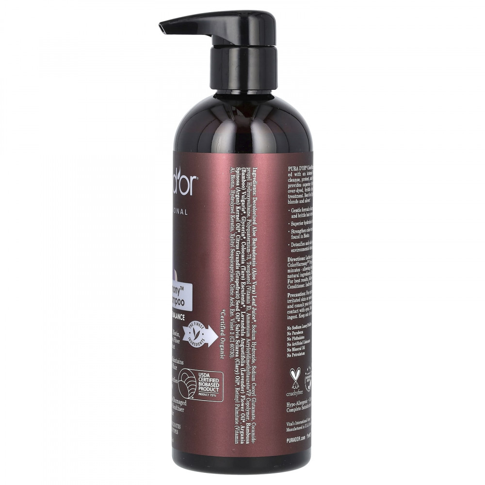 Шампунь ColorHarmony™ Purple от Pura D'or® содержит интенсивную смесь ингредиентов премиального качества, которые очищают, защищают и тонизируют окрашенные волосы. Наш шампунь обеспечивает превосходное увлажнение, помогая оживить высушенные, перекрашенные и ломкие волосы, не удаляя при этом пигмент. Лучше всего подходит для светлых волос, особенно для обесцвеченных светлых и серебристых волос!