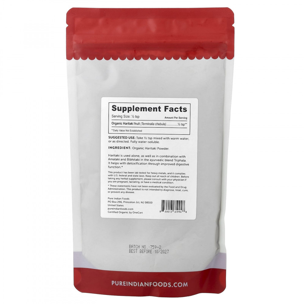 Харитаки используется отдельно, а также в сочетании с амалаки и бибхитаки в аюрведической смеси Трифала. Он способствует детоксикации за счет улучшения пищеварительной функции.