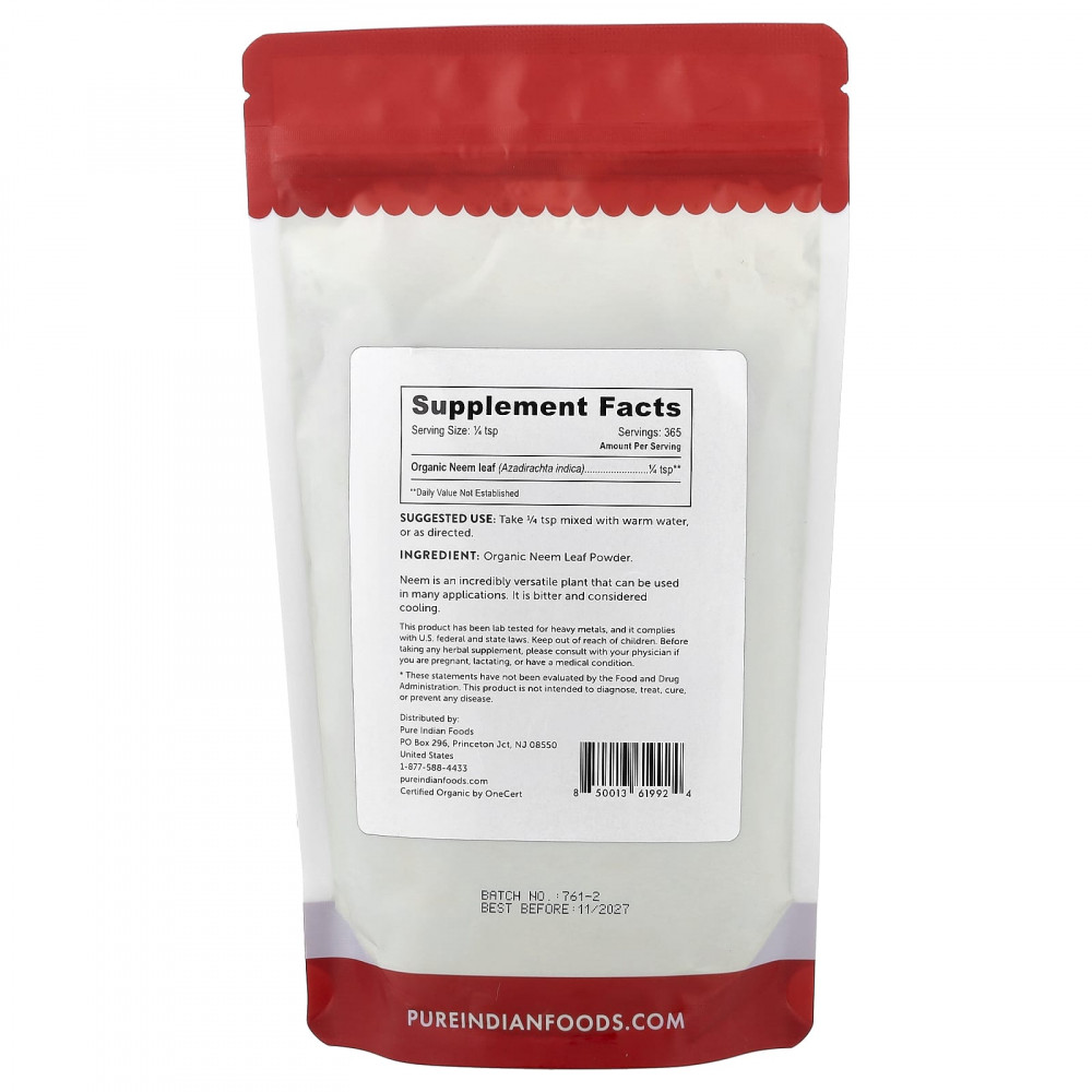 | Листья органического нима (Azadirachta indica) | 1/4 ч. л. | ** |