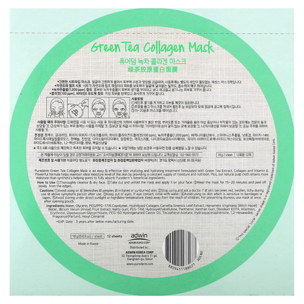Коллагеновая маска с зеленым чаем Purederm - это простая и эффективная процедура для оживления и увлажнения кожи, в состав которой входят экстракт зеленого чая, коллаген и витамин Е. Эффективная формула помогает поддерживать идеальный уровень увлажнения кожи, обеспечивая постоянное увлажнение и питание. Кроме того, наша ткань из натуральной целлюлозы удерживает больше влаги, чем синтетика, помогая порам полностью впитывать полезные ингредиенты Purederm.