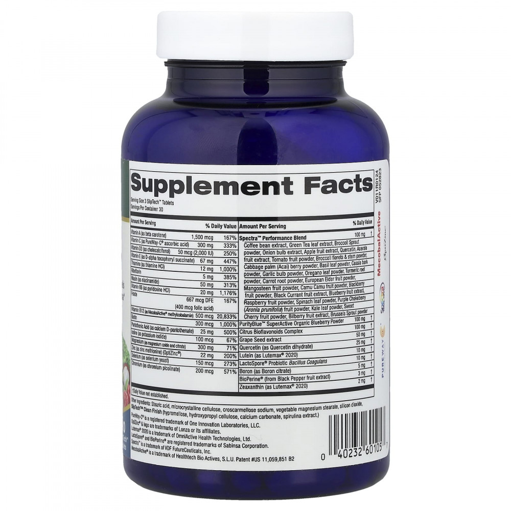 | Смесь для повышения эффективности Spectra ™ Экстракт кофейных зерен, экстракт листьев зеленого чая, порошок из ростков брокколи, экстракт лука, экстракт плодов яблока, кверцетин, экстракт плодов ацеролы, порошок из плодов томатов, порошок из соцветий и стеблей брокколи, порошок из ягод кочанной пальмы (асаи), порошок из листьев базилика, кассия порошок из коры, порошок из луковиц чеснока, порошок из листьев орегано, порошок из корня куркумы, порошок из корня моркови, порошок из плодов бузины, порошок из плодов мангостана, порошок из плодов каму-каму, порошок из плодов ежевики, экстракт плодов черной смородины, экстракт плодов голубики, порошок из плодов малины, Порошок из листьев шпината, порошок из плодов аронии черноплодной (Aronia prunifolia), порошок из листьев капусты, порошок из плодов черешни, экстракт плодов черники, порошок из брюссельской капусты. | 100 мг | † |