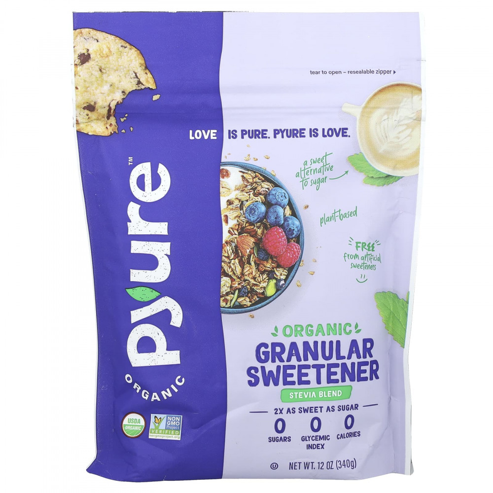 * Органический гранулированный подсластитель со стевией от Pyure сравнивают с столовым сахаром. Сладость — это ощущение. Для достижения наилучших результатов проверьте перед использованием.