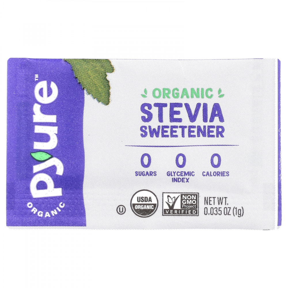 * 1 пакетик (1 г) гранулированного подсластителя Pyure® по сравнению с 2 пакетиками сахара (8 г). Сладость — это ощущение. Для достижения наилучших результатов проверьте перед использованием.