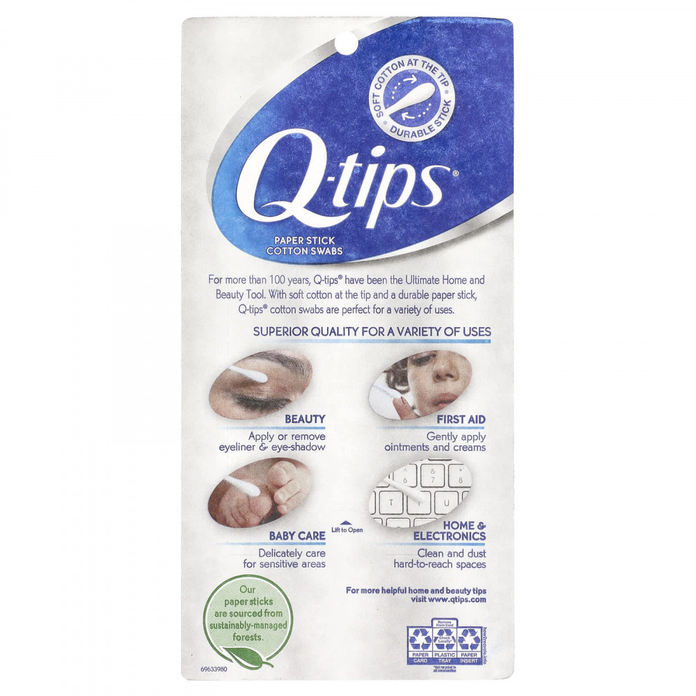 Вот уже более 100 лет Q-Tips® являются идеальным средством для красоты и дома. Ватные палочки Q-Tips® с мягкой ватой на кончике и прочной бумажной палочкой идеально подходят для самых разных целей.