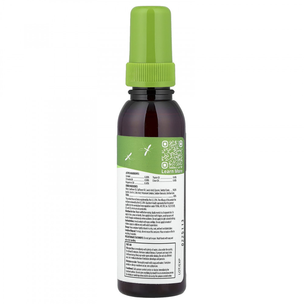 | Активные ингредиенты: Гераниол (6%), цитронелла (0,98%), масло перечной мяты (0,40%), масло чабреца (0,40%), гвоздичное масло (0,40%). |