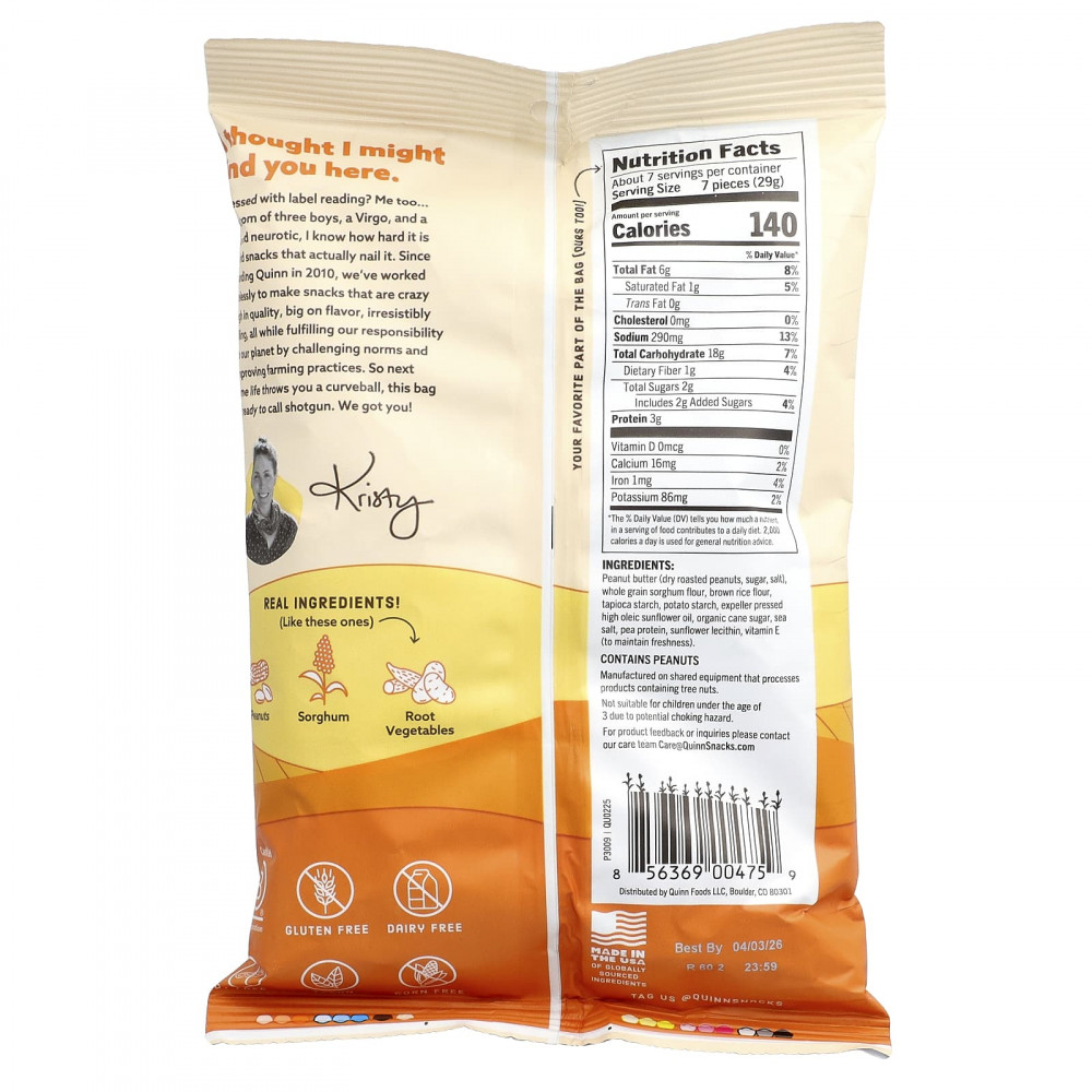 Нравится читать этикетки? Я тоже... Как мама троих мальчиков, Дева и сертифицированный невротик, я знаю, как сложно найти снеки, которые действительно помогают. С момента основания компании Quinn в 2010 году мы неустанно трудились над созданием снеков невероятно высокого качества, с насыщенным вкусом и неотразимой сытностью. При этом мы выполняем свой долг перед нашей платформой, внедряя новые стандарты и совершенствуя методы ведения сельского хозяйства. Так что в следующий раз, когда жизнь подкинет вам палочку, этот мешочек будет вам по вкусу. Мы вас поняли!