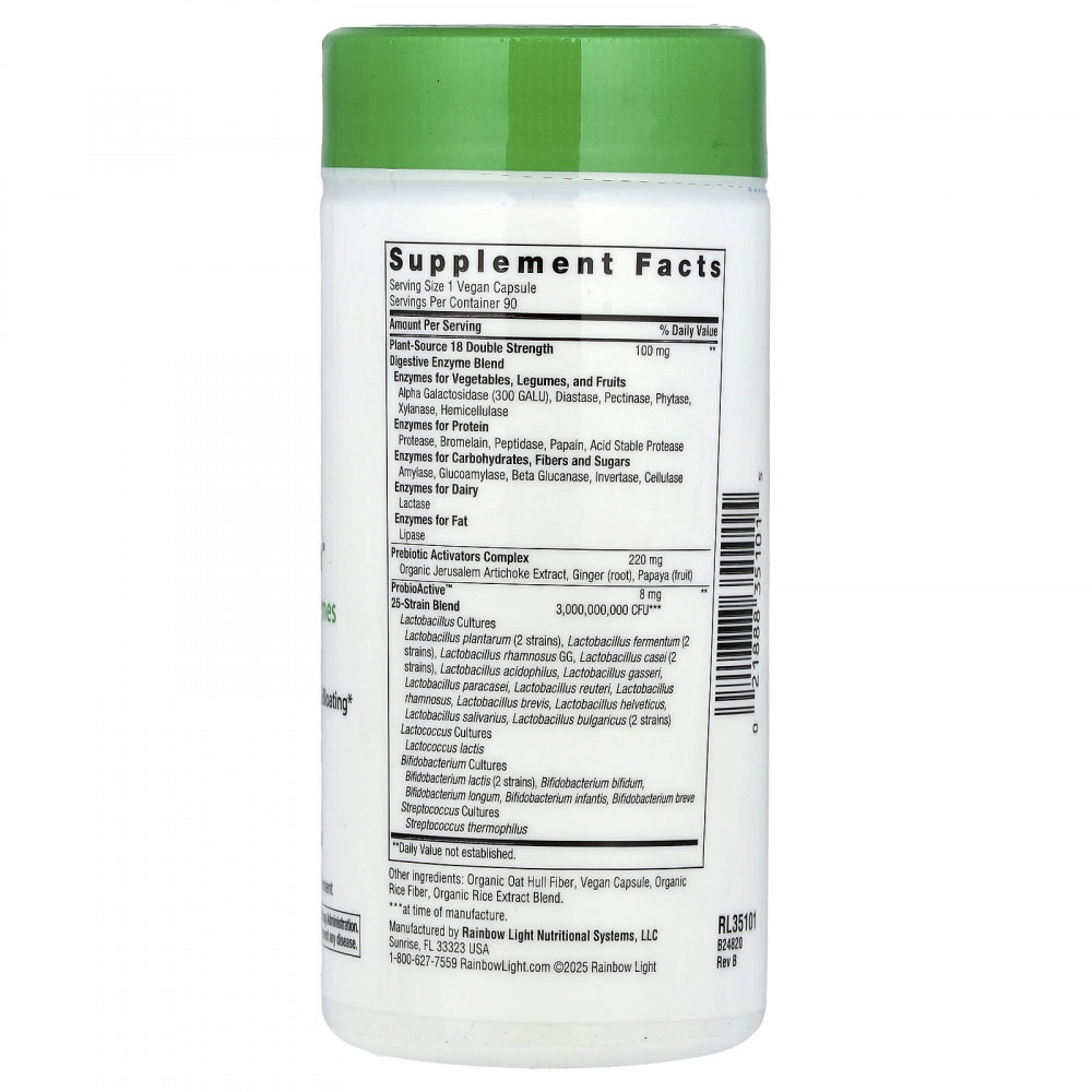 Ферменты растительного происхождения двойной силы и 25 штаммов пробиотиков способствуют пищеварению и могут способствовать комфорту пищеварения после любого приема пищи. Веганские капсулы, которые легко глотать, содержат ферменты растительного происхождения. Поддерживает здоровье пищеварительных ферментов.