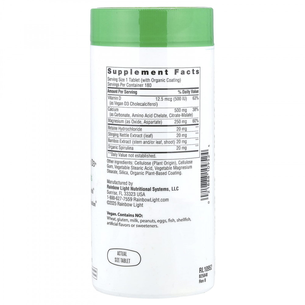 Всего одна таблетка в день помогает поддерживать плотность костей и здоровье мышц. содержит 500 мг кальция — идеальное количество для оптимального усвоения, — а также кофакторы, необходимые для усвоения и использования кальция, а также цельные продукты для легкого пищеварения.