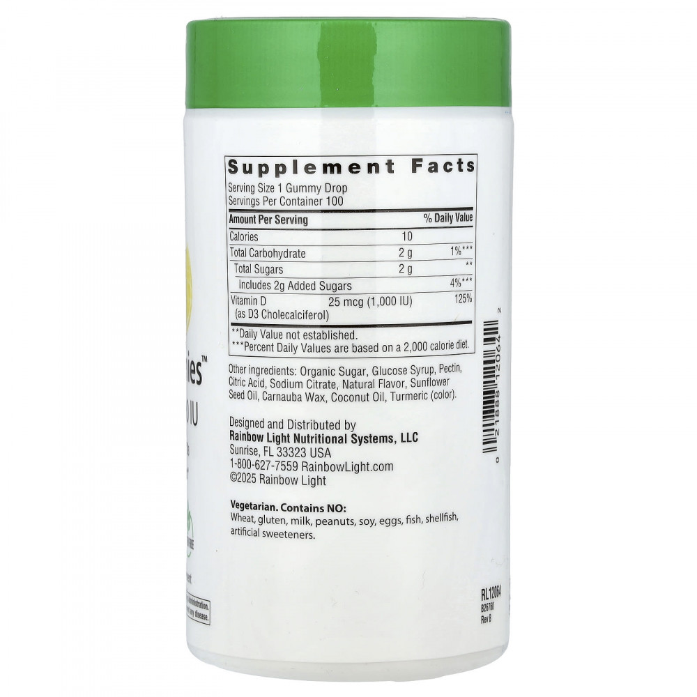| Витамин D (в виде холекальциферола D3) | 25 мкг (1000 МЕ) | 125% |