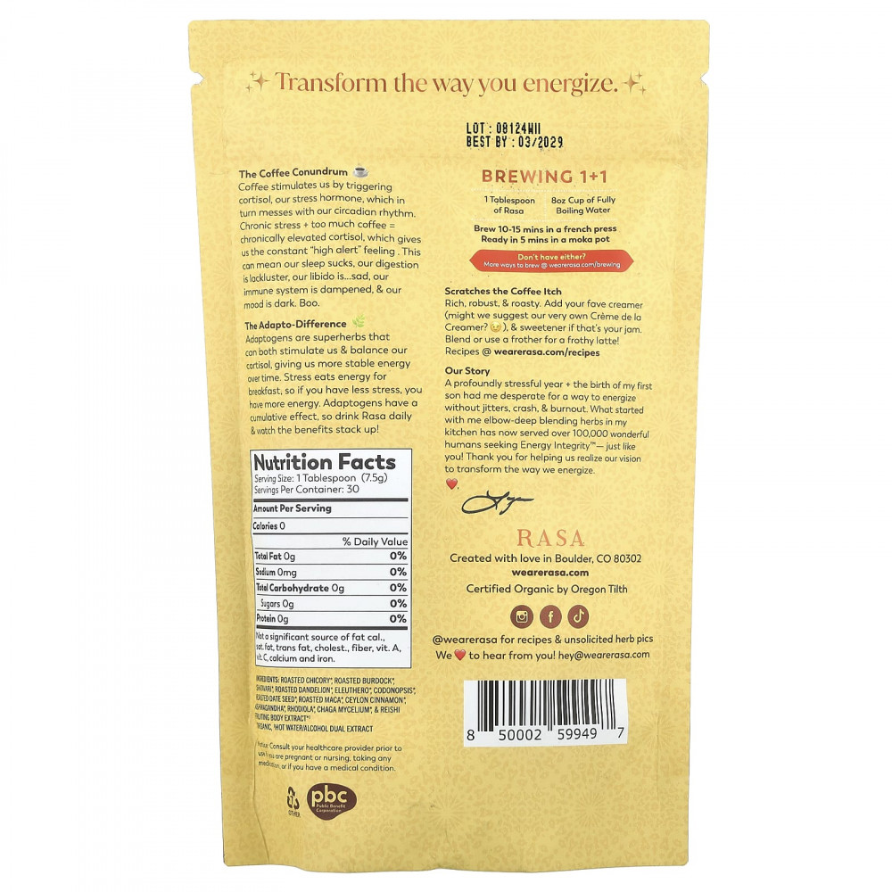 Адаптогены - это супер-травы, которые стимулируют и уравновешивают уровень кортизола, давая нам более стабильную энергию. Стресс поглощает энергию на завтрак, поэтому, если у вас меньше стресса, у вас больше энергии. Адаптогены обладают кумулятивным эффектом, поэтому пейте раса каждый день и наблюдайте за увеличением его пользы!