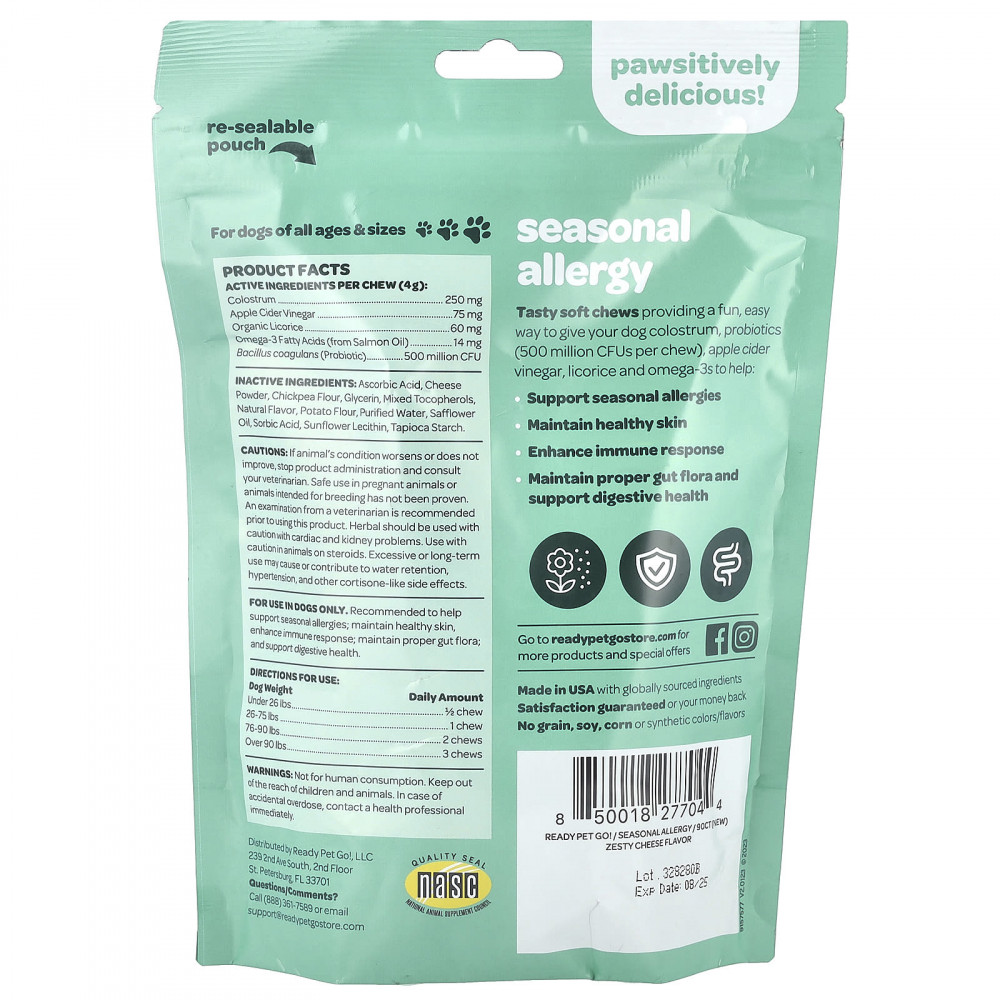 Вкусные мягкие жевательные таблетки, обеспечивающие легкий и забавный способ дать вашей собаке молозиво, пробиотики (500 миллионов КОЕ в 1 жевательной таблетке), яблочный уксус, солодку и кислоты омега-3, которые помогут: