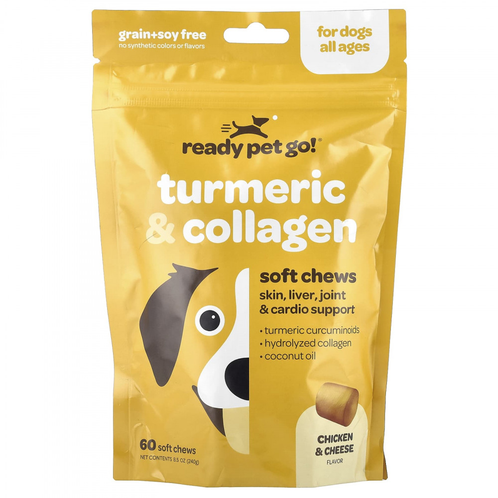 Вкусные мягкие жевательные таблетки обеспечивают забавный и простой способ дать вашей собаке куркуминоиды из куркумы (плюс экстракт черного перца для улучшения усвоения), кокосовое масло и коллаген, которые помогут: