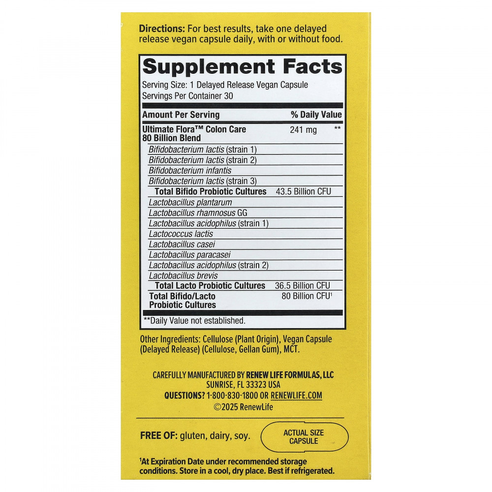 80 млрд пробиотиков для здоровья кишечника Ultimate Flora™ — это формула повышенной силы действия, содержащая 12 специально отобранных штаммов, которая восстанавливает баланс в желудочно-кишечном тракте, помогает облегчить эпизодические запоры и поддержать здоровье пищеварительной системы. Она содержит больше бифидобактерий, чем лактобактерий, поэтому обеспечивает больше полезных бактерий в толстой кишке.