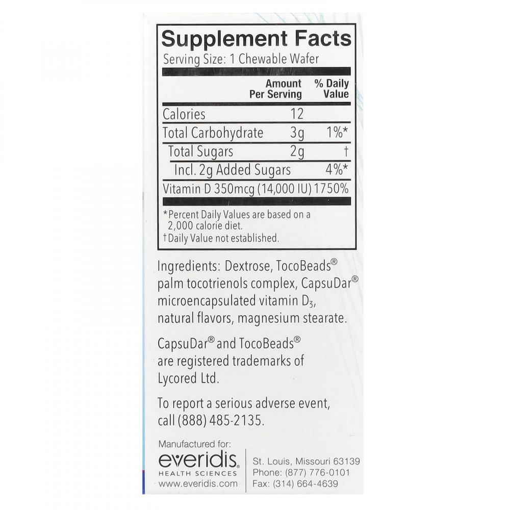 Декстроза, комплекс пальмовых токотриенолов Tocobeads®, микрокапсулированный витамин d3 от capsudar®, натуральные ароматизаторы, стеарат магния.