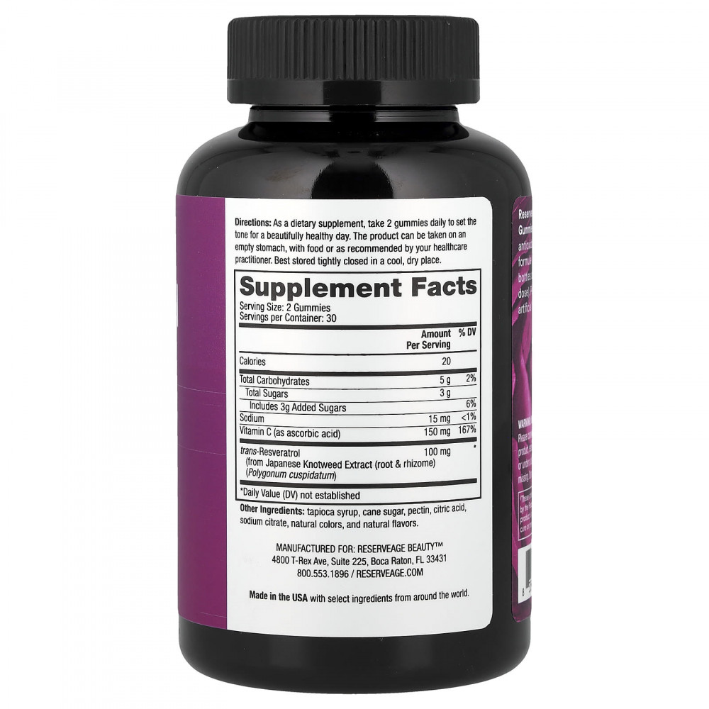 Жевательные таблетки с ресвератролом Reserveage 100 мг - это вкусный, но мощный антиоксидант и формула для поддержки сердечно-сосудистой системы (при условии потребления 70 бутылок красного вина для получения такой же дозы). Жевательные таблетки на основе пектина, без искусственных ароматизаторов и красителей.