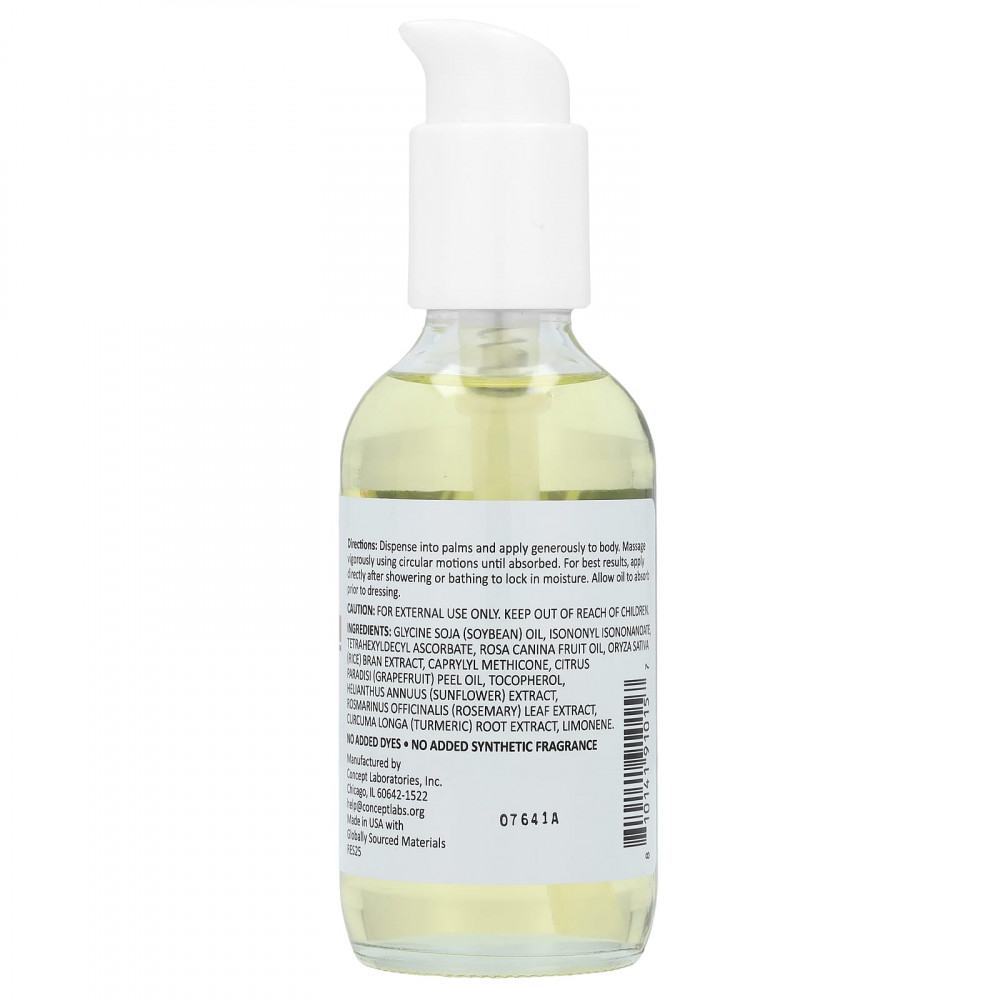 Соевое масло (глицин), изононил изононаноат, тетрагексилдецил аскорбат, масло шиповника (Rosa canina), экстракт рисовых отрубей (Oryza sativa), каприлил метикон, масло из цедры грейпфрута (Citrus paradisi), токоферол, экстракт подсолнечника (Helianthus annuus), экстракт листьев розмарина (Rosmarinus officinalis), экстракт корня куркумы (Curcuma longa), лимонен.