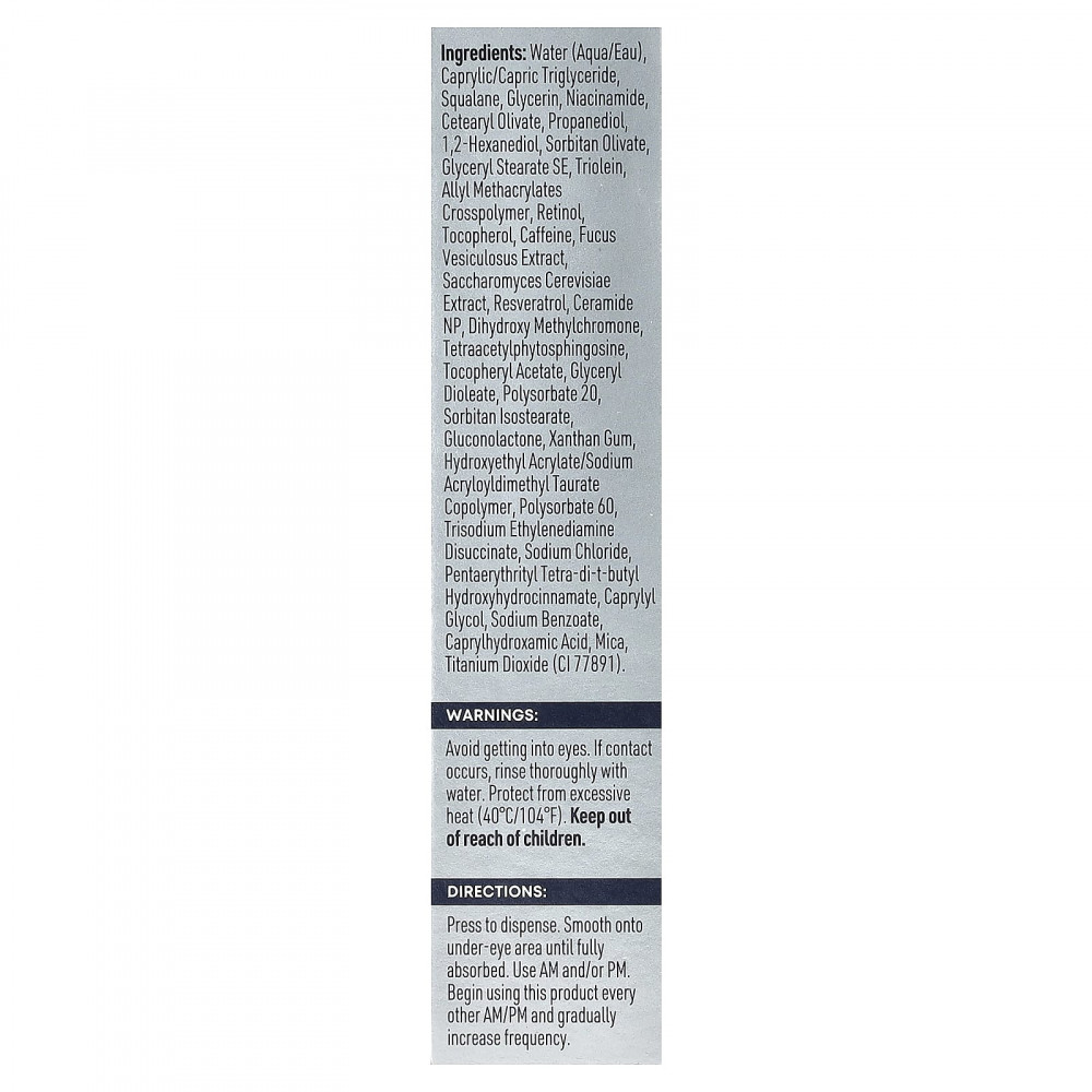 Вода (aqua/eau), каприловый/каприновый триглицерид, сквалан, глицерин, никотинамид, цетеарил оливат, пропандиол, 1,2-гександиол, сорбитан оливат, глицерил стеарат эмульгирующий, триолеин, кроссполимер аллилметакрилата, ретинол, токоферол, кофеин, экстракт фукуса (Fucus vesiculosus), экстракт пекарских дрожжей (Saccharomyces cerevisiae), ресвератрол, керамид NP, дигидрокси метилхромон, тетраацетилфитосфингозин, токоферилацетат, глицерил диолеат, полисорбат 20, сорбитан изостеарат, глюконолактон, ксантановая камедь, гидроксиэтил акрилат/натрия акрилоилдиметилтаурата сополимер, полисорбат 60, тринатрия этилендиамин дисукцинат, хлорид натрия, пентаэритритил тетра-ди-трет-бутил гидроксигидроциннамат, каприловый гликоль, бензоат натрия, каприлгидроксаминовая кислота, слюда, диоксид титана (CI 77891).