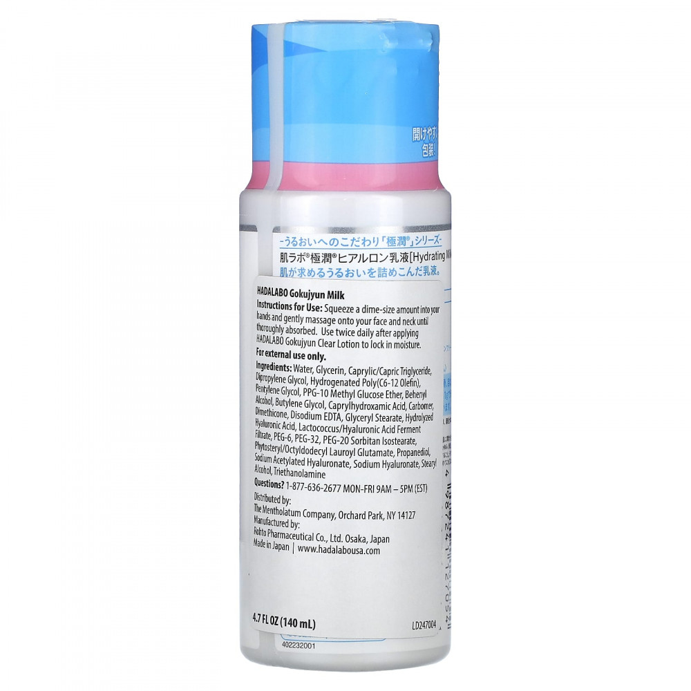 Молочко Hadalabo Gokujyun — это легкий лосьон, который лучше подходит для жирной кожи. Он хорошо сочетается с другими продуктами и сохраняет кожу увлажненной и сияющей.