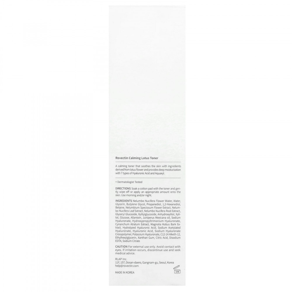 Успокаивающий тоник с ингредиентами, полученными из цветка лотоса, обеспечивает глубокое увлажнение с помощью 7 видов гиалуроновой кислоты и акваксила.