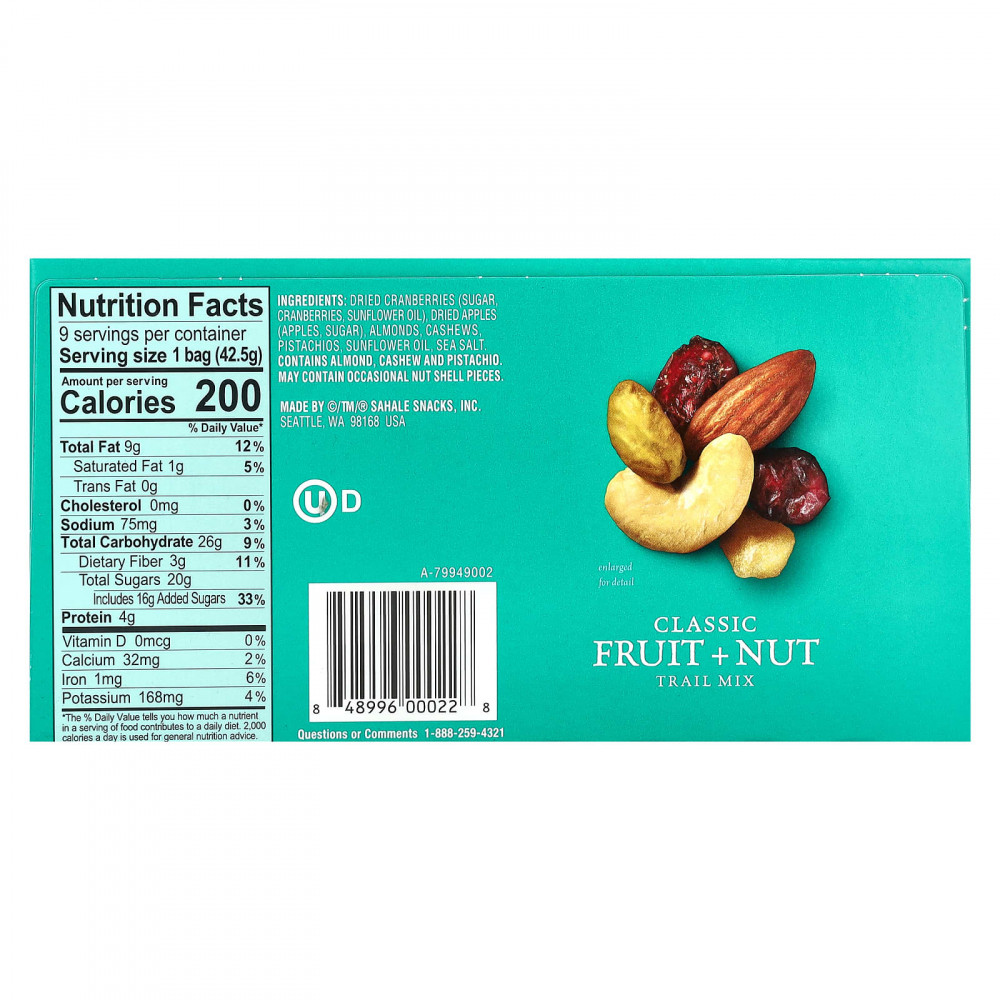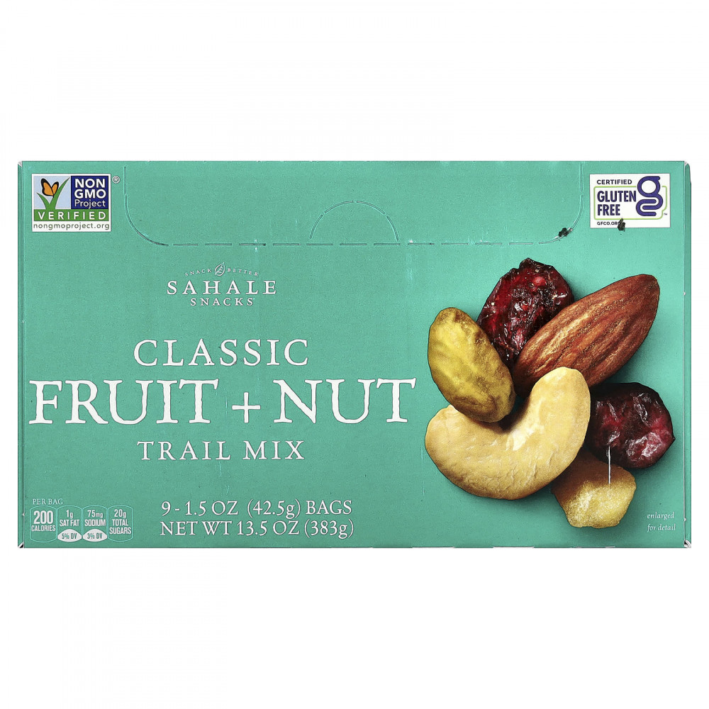 В ней содержатся только качественные продукты, вам не придется выбирать лучшее из пакетика. Наша классическая смесь фруктов и орехов состоит из цельного миндаля, кешью, фисташек, клюквы и яблок. Beyond Ordinary®.