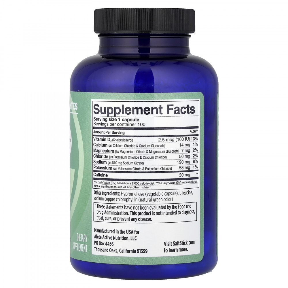 SaltStick Caps Plus создан для обеспечения интенсивной производительности и обеспечивает такое же соотношение электролитов, которое организм теряет с потом, что помогает свести к минимуму тепловой стресс и мышечные спазмы из-за обезвоживания.Каждая порция содержит 100 МЕ витамина D, который способствует усвоению кальция, и 30 мг кофеина для заряда энергии.