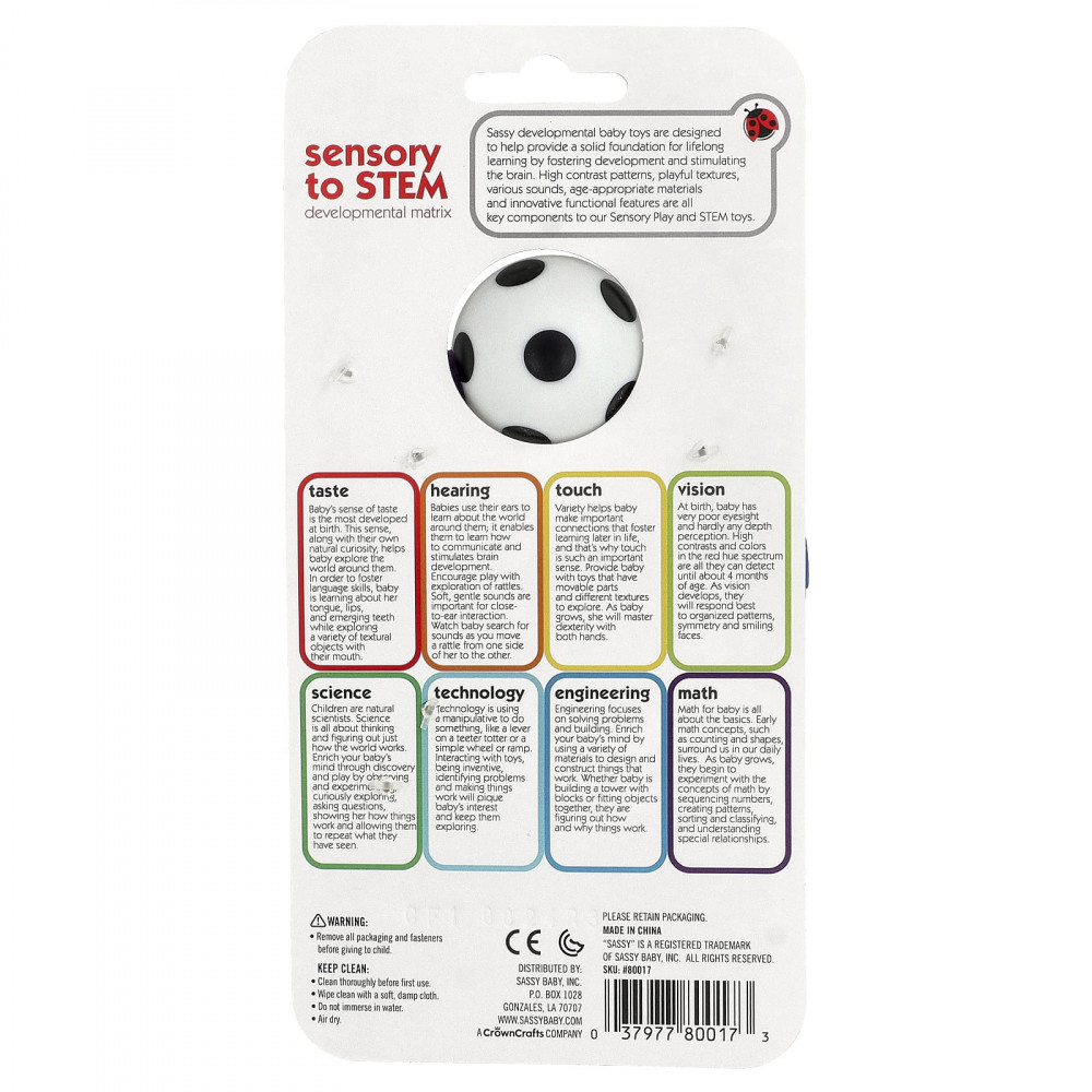 Детские развивающие игрушки Sassy разработаны, чтобы обеспечить прочную основу для длительного обучения, способствуют развитию и стимулируют работу мозга. Высококонтрастные узоры, разнообразные текстуры, различные звуки, соответствующие возрасту материалы и инновационные функциональные особенности — все это главные компоненты наших игрушек Sensory Play и STEM.