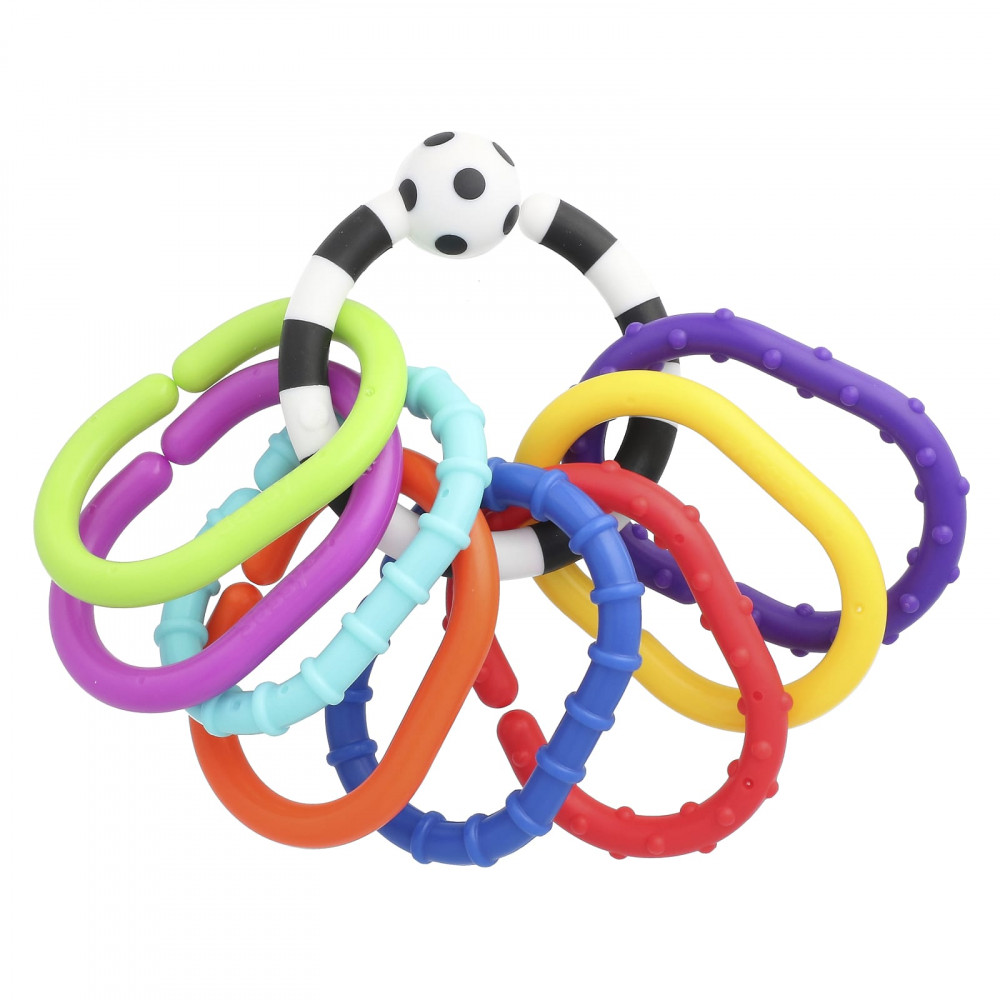Эти яркие разноцветные ссылки обеспечивают визуальную стимуляцию и вдохновляют на прикосновения. Большое мягкое на ощупь кольцо и разноцветные звенья стимулируют осязание, повышая мозговую активность, а яркие цвета стимулируют зрение ребенка. Эти звенья не только являются отличной игрушкой для детей, но и имеют открытые концы, что позволяет с легкостью связать другие игрушки.
