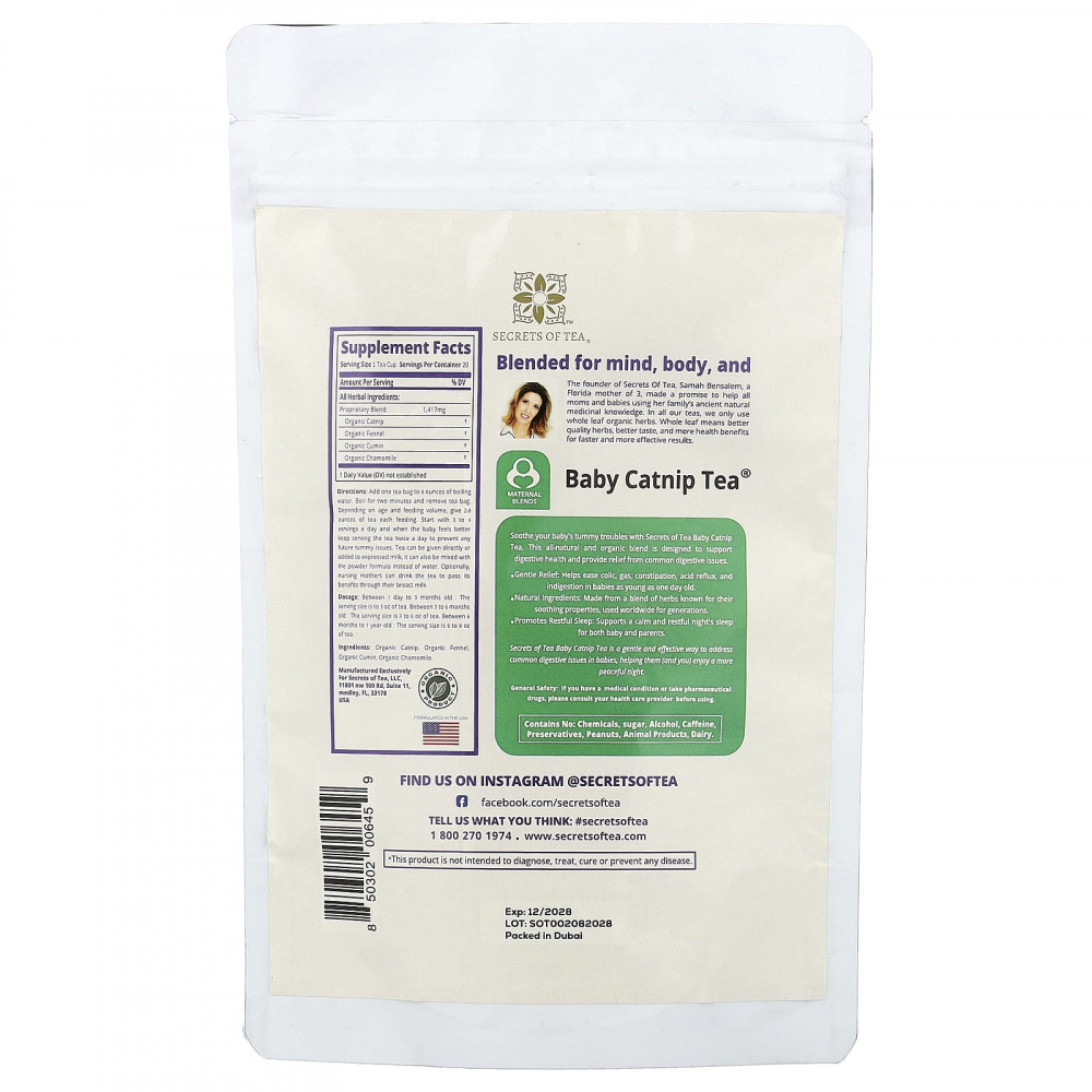 Чай с кошачьей мятой Secrets of Tea поможет вашему ребенку избавиться от проблем с животиком. Эта полностью натуральная органическая смесь разработана для поддержания здоровья пищеварительной системы и облегчения распространенных проблем с пищеварением.